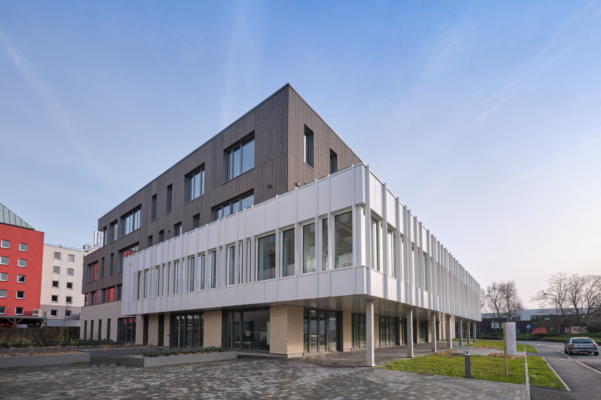 Les deux bâtiments sur 4 niveaux, d’une superficie respective de 2 400 m² et 3 600 m², incarnent l’alliance parfaite entre élégance architecturale et performance environnementale.